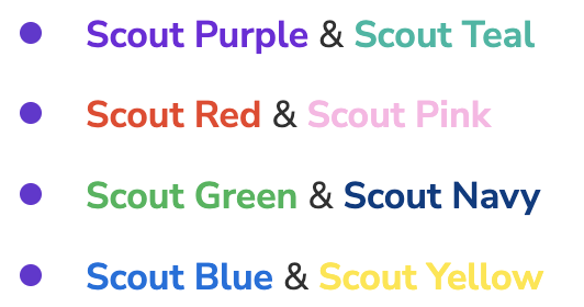 Nová vylepšená paleta britských skautských farieb ponúka osem základných farieb doplnených o čiernu a bielu. Takto široká farebná paleta dáva celkovej komunikácii potrebnú flexibilitu.