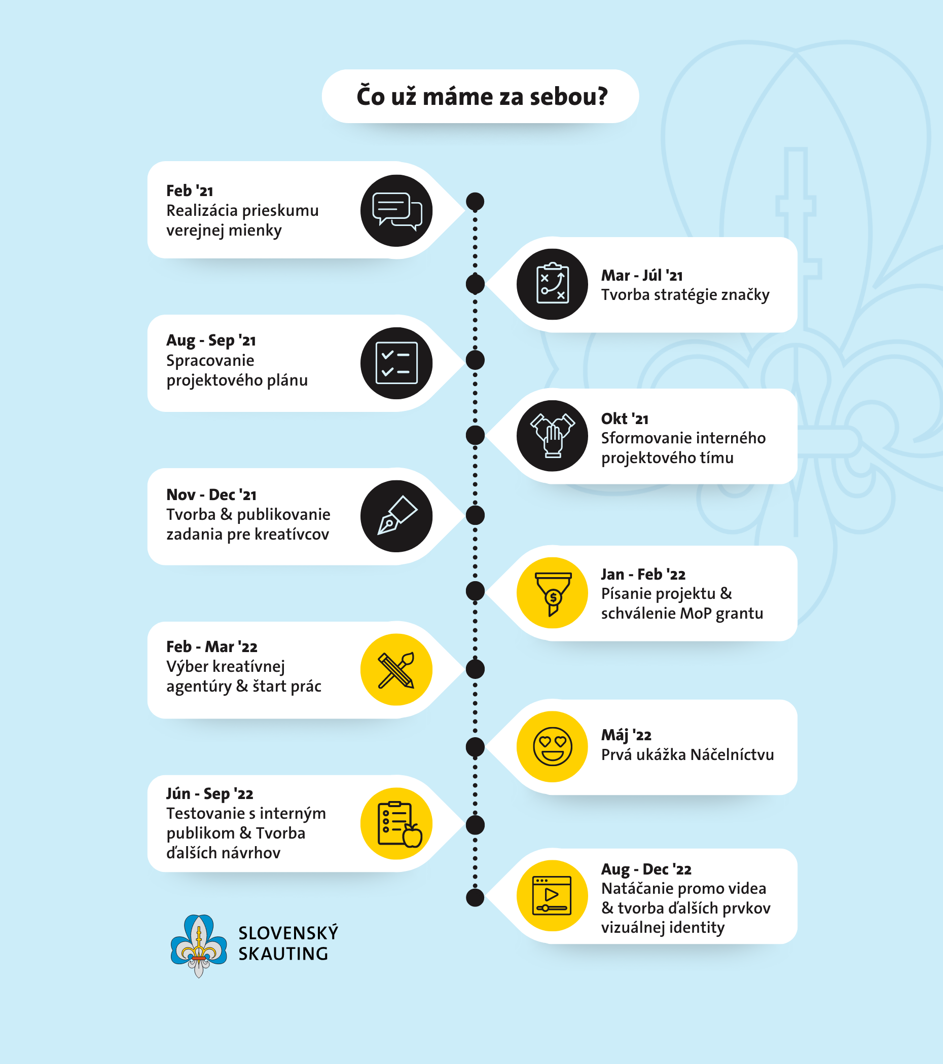 - Vytvorili sme stratégiu značky, ktorá hovorí o tom, kto je naša cieľová skupina, aký je náš príbeh, aká je naša vízia, hodnoty, čo je na skautingu unikátne a ako šíriť naše posolstvo medzi našu cieľovú skupinu.