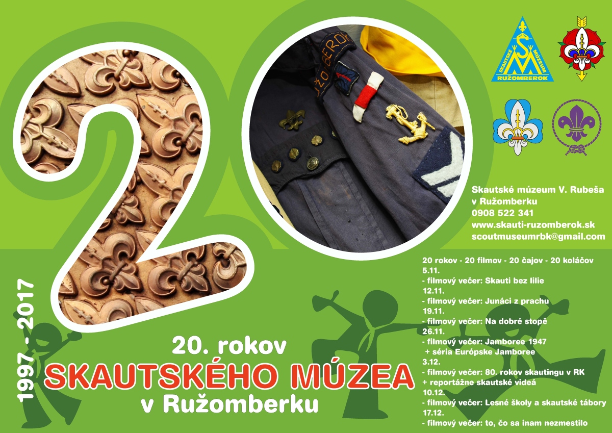 Skautské múzeum v Ružomberku tento rok oslavuje už 20 rokov od svojho založenia. V ponuke pre skautskú verejnosť pri tejto príležitosti nájdete filmové večery, na ktorých sa premietne 20 filmov so skautskou tematikou. Ten prvý začína už v nedeľu 5. 11. večer o 18tej hodine v Skautskom múzeu v Ružomberku.