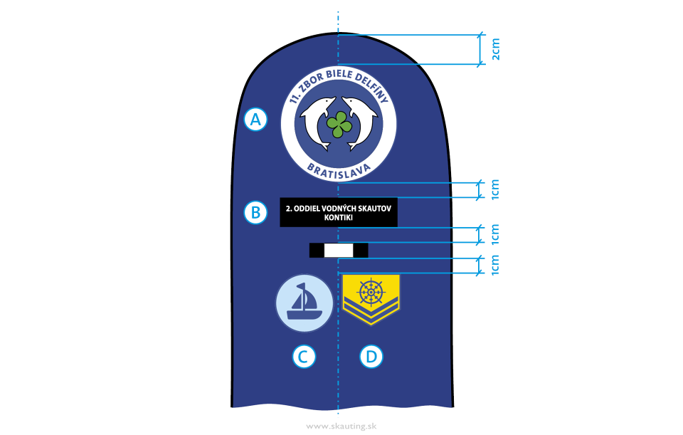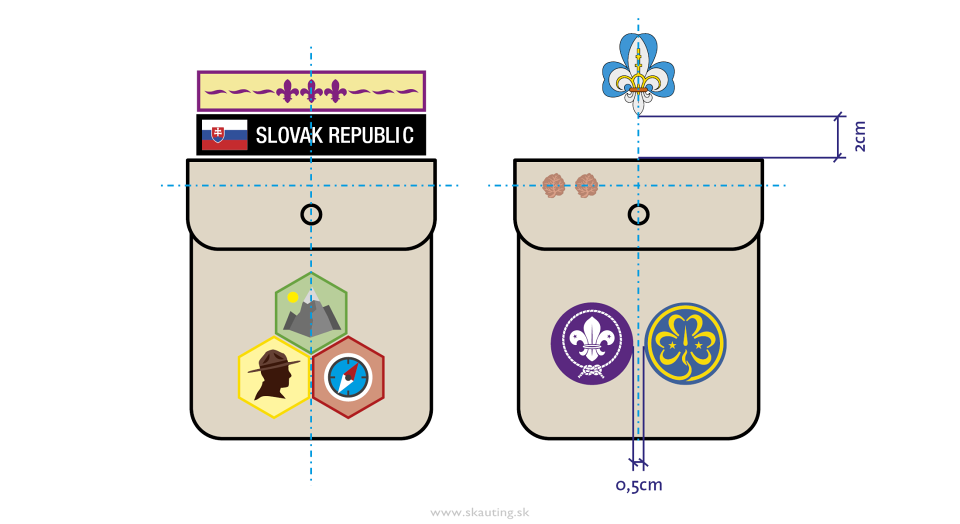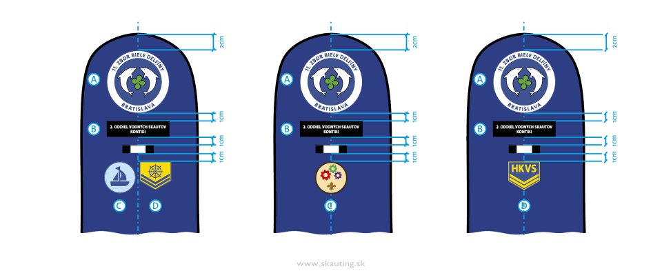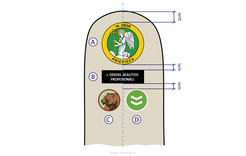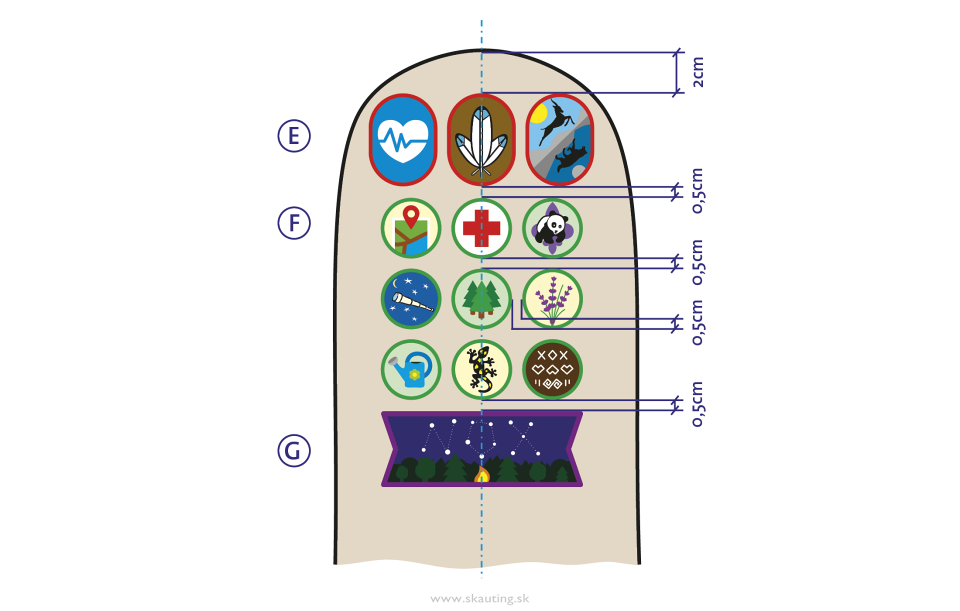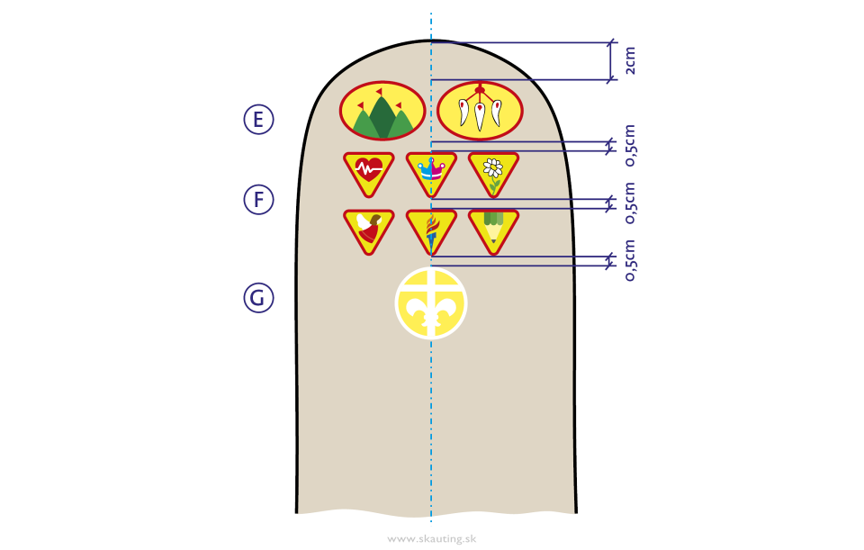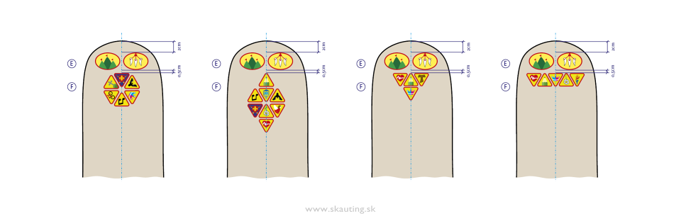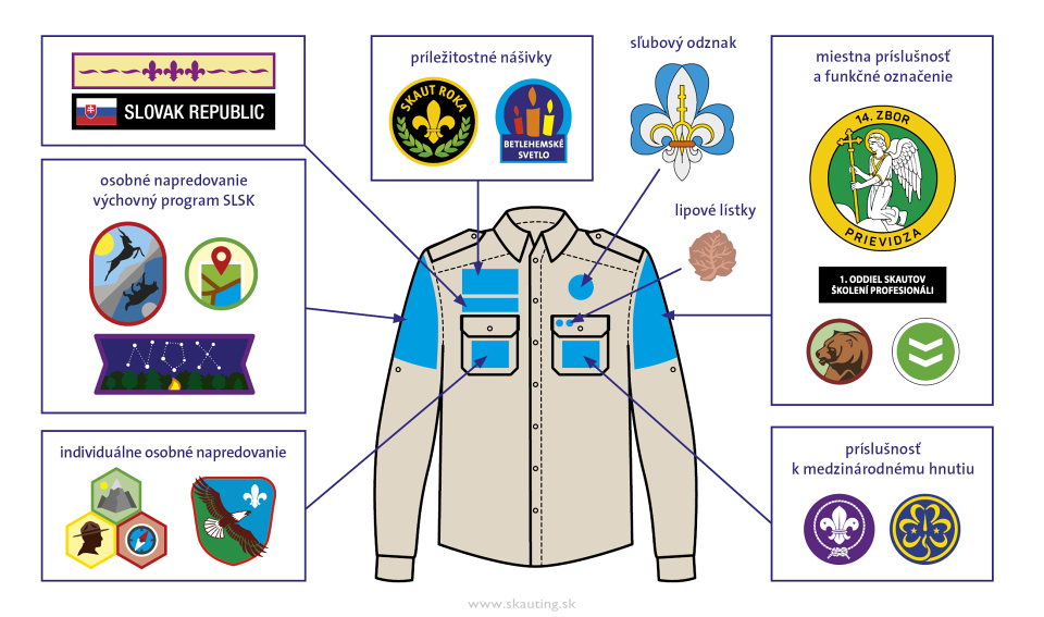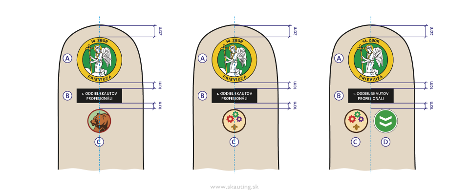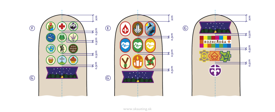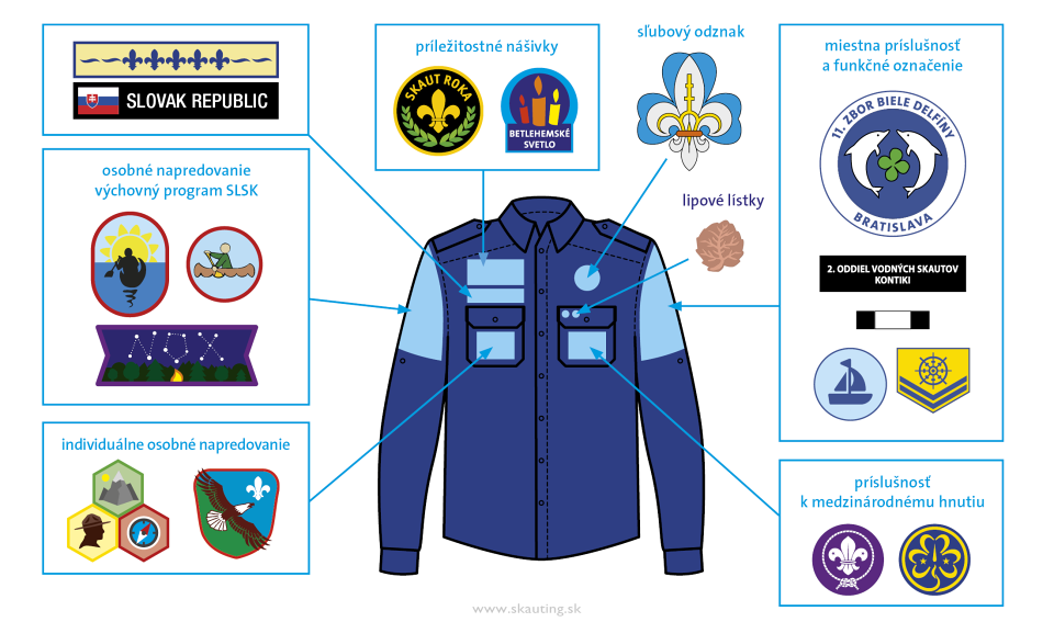 Na skautskej košeli má všetko svoje miesto. Nie je vhodné, či dokonca prípustné si jednotlivé vyčlenené zóny zamieňať či kombinovať.