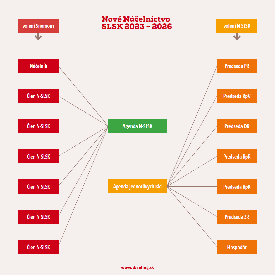 Náčelníka SLSK budeme voliť rovnako ako doteraz. Ostatní kandidáti si vyberú 2-3 témy, ktorým by sa vedeli venovať v N-SLSK. Pred voľbami musí prebehnúť kvalitná diskusia s kandidátmi. Šesť kandidátov s najvyšším počtom hlasov sa stane ďalšími členmi N-SLSK. Následne si vyberú, ktorým témam sa budú venovať.