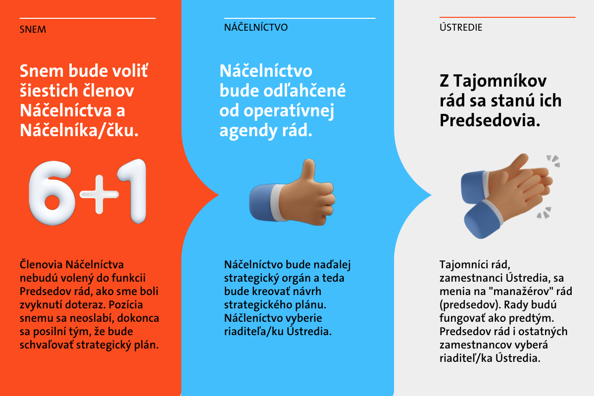 Okrem toho sme sa pravidelne stretávali s radami, kde sme preberali presun kompetencií z predsedu na tajomníka. Každá rada má svoje tempo. Niektoré fungujú veľmi blízko tomu, ako si to predstavujeme po transformácii. V pravidelných stretnutiach plánujeme pokračovať. Snažíme sa tak aktívne reagovať na prípadné výzvy, ktorým môžu rady čeliť pri tejto zmene.