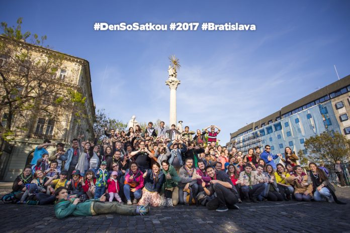 Viac ako stovka skautiek a skautov sa popoludní 24. apríla stretla na Hviezdoslavovom námestí v Bratislave, aby už tradične spoločne oslávili Deň so skautskou šatkou.