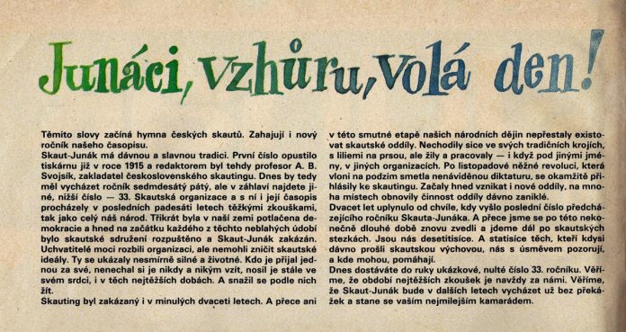 Zdroj: Časopis SKAUT Junák, nulté číslo, ročník XXXIII, rok 1990