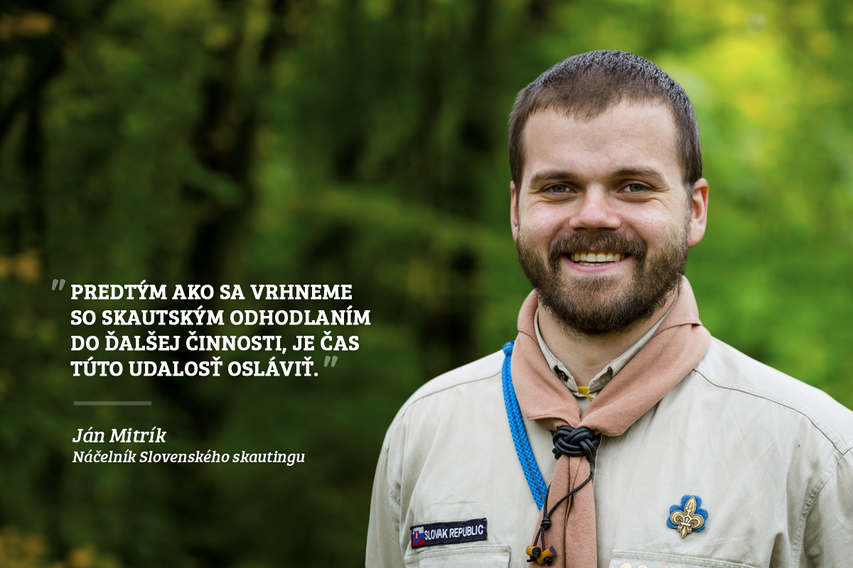 Miesta na rozdávanie energie máme okolo seba dostatok a po oslave si potrebujeme vyhrnúť rukávy a pustiť sa do činnosti. Niektorí z nás sa logicky pýtajú: „Prečo slúžiť ďalej, keď sme slúžili už dosť? Obetovali sme toho veľmi veľa!“ Mnohí sme sa obetovali počas pandémie. Neostali sme vo vlastnej bezpečnej ulite, ale pripravovali sme akcie pre mladších, rozvážali jedlo, zodpovedne vykonávali našu prácu, dodržiavali pravidlá, nechali sa zaočkovať a pokojným srdcom boli oporou v našich domovoch. Odpoveď na otázku: „Prečo ďalej?“ musí však každý nájsť vo svojom srdci. Neexistuje jedna správna odpoveď. Môžem sa podeliť s tou mojou. Myslím, že slúžiť je naša skautská DNA. Slúžime aj vtedy, kedy by už mnohí iní skončili. Mnohokrát v slzách a v pote. Stále však s úsmevom na perách, alebo aspoň v srdci. To je jedna z najkrajších veci na skautingu. Spojenie veselosti, nadšenia a služby v spoločenstve bratov a sestier.