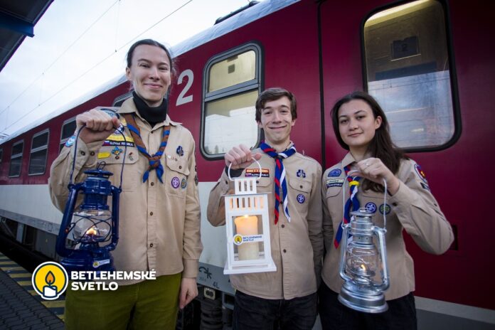 BRATISLAVA – 19. decembra 2024. Počas tohto víkendu čaká Betlehemské svetlo už tradičná cesta vlakmi po celom Slovensku. Skauti ho postupne doručia na jednotlivé vlakové stanice, kam si poň môže prísť každý, kto má záujem. Svetlo sa prostredníctvom skautských dobrovoľníkov dostane do viac ako 300 slovenských obcí a to aj na miesta, kde nie je priame vlakové spojenie.