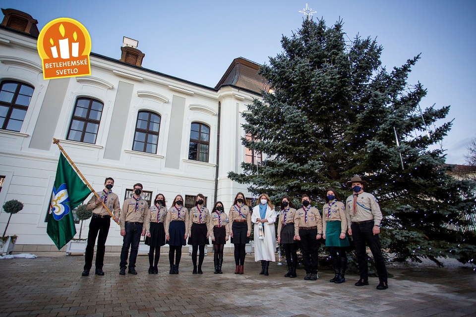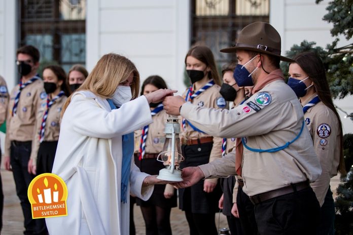 BRATISLAVA – 13. decembra 2021. Slovenskí skauti odovzdali Betlehemské svetlo prezidentke Slovenskej republiky, pani Zuzane Čaputovej. Pevne veríme, že v nasledujúcich dňoch sa Plamienok z Betlehema začne šíriť po celom Slovensku, aby na Vianoce rozžiaril štedrovečerné stoly a priniesol do našich domovov v týchto dňoch okrem svojej žiary aj nádej, pokoj a lásku.