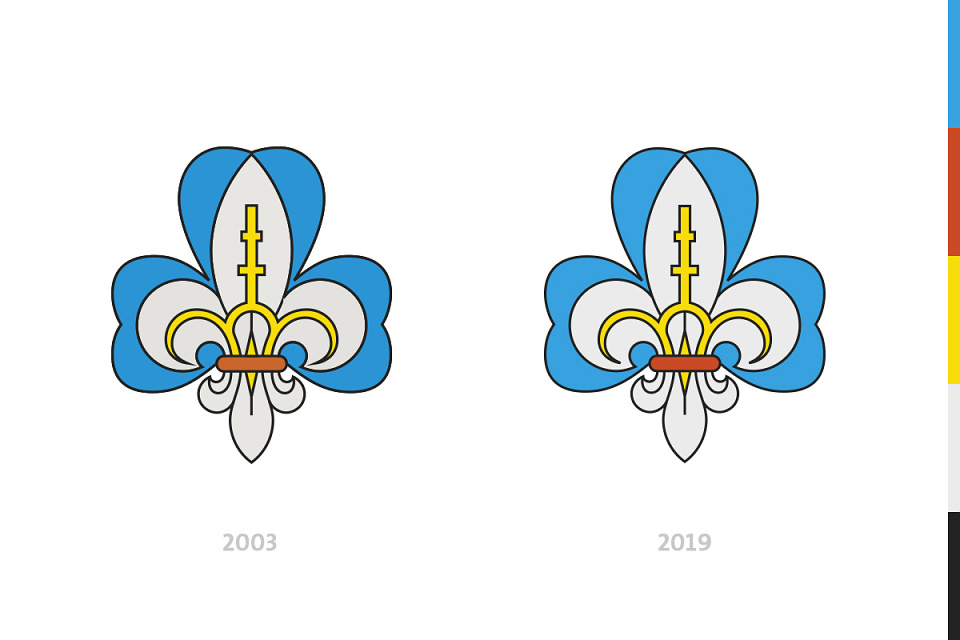 Porovnanie grafického spracovania slovenskej skautskej ľalie z roku 2003 a 2019.