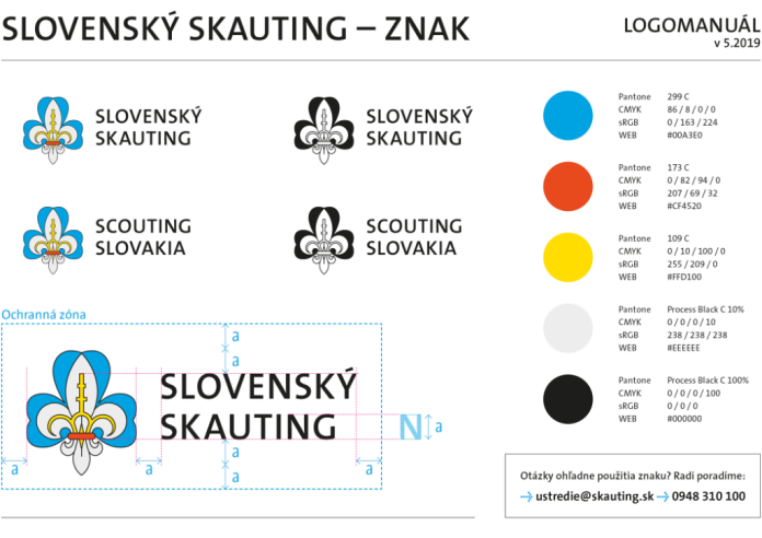 K dispozícii sú na stiahnutie a následné použitie aktuálna verzia v dvoch jazykových prevedeniach – slovenskom a anglickom jazyku vo formáte png s bielym pozadím vrátane ochrannej zóny. V prípade otázok ohľadne správneho použitia, aplikácie, či potreby iného formátu súboru nás, prosím, kontaktujte prostredníctvom emailovej adresy ustredie@skauting.sk.