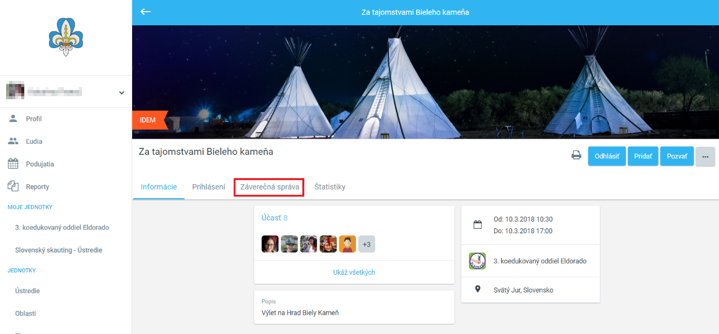 V informačnom systéme Tee-Pee pribudla nova funkcionalita, a to nahrávanie záverečných správ z podujatí priamo do systému. Teraz si krok po kroku ukážeme, ako na to. Podujatie vytvoríme a nahráme účastníkov ešte pre akciou, aby sme mohli z Tee-Pee vytlačiť prezenčnú listinu, ktorú účasntníci na akcii podpíšu. Po zrealizovaní podujatia v Tee-Pee vytvoríme a odošleme záverečnú správu.