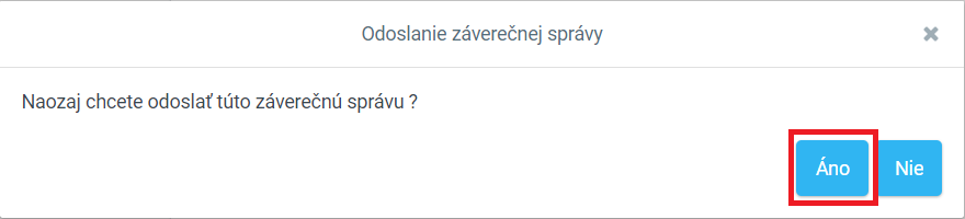 11. Potvrdíme, že chceme naozaj odoslať záverečnú správu kliknutím na Áno.
